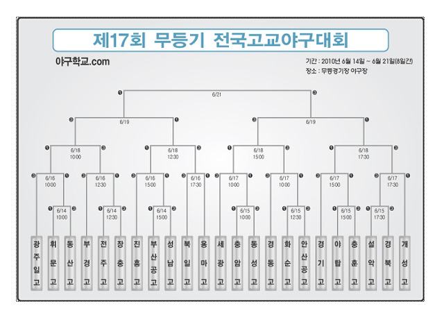 - [140] 관리자 제17회 무등기 전국 고교야구대회 대진표 2010-06-16