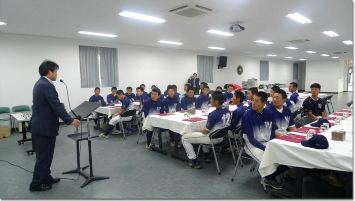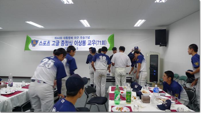 71회 이 상봉 교우가 모교 야구부 감독, 코치 및 선수 전원에게 고급 스포츠 선수용