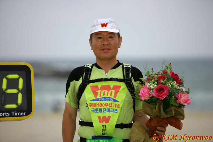 <P>휘문의 마라토너 두분이 그 어렵다는 대한민국 국토횡단에 성공하였기에 축하의 글을 올립니다.<BR>2006년 9월14일 강화도 창후리에서 밤10시출발~ 17일낮 강릉 경포대까지 무박으로 국토횡단 308키로를 무사히 달려 완주하였습니다. 완주도 중요하지만 그 준비과정또한 힘겨웠으니 두동문의 불굴의 투지와 도전정신에 뜨거운 박수를 보냅니다. </P>