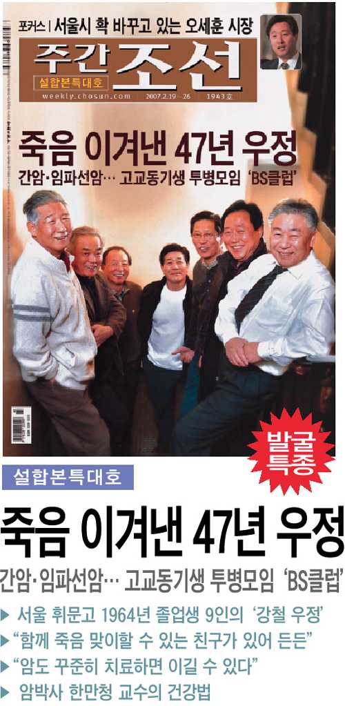 <P> 오늘 발행된 주간조선 설합본특대호 1943호 2007.2.19-26일자의 표지기사에 죽음을 이겨낸 </P>