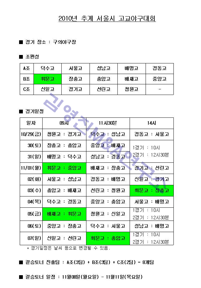 - [2772] 김영진 2010년 추계서울시고교야구 대진표 2010-10-20