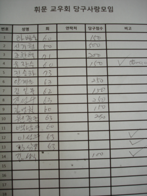 제1회 휘당회(가칭) 모임이 10월 23일 오후 4시 국일관(종로3가)에 있는 당구장에서 있었습니다.
