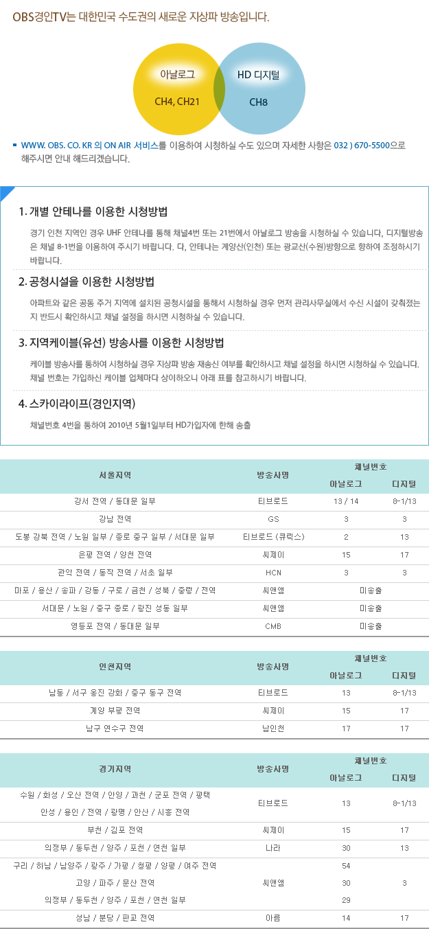 1. 방송국 : 경인TV (OBS)