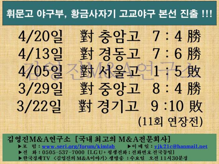 휘문고, 황금사자기 고교야구 본선 진출!!!