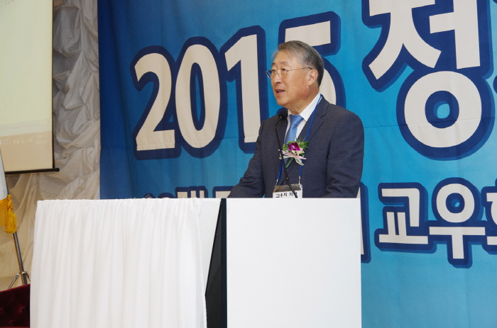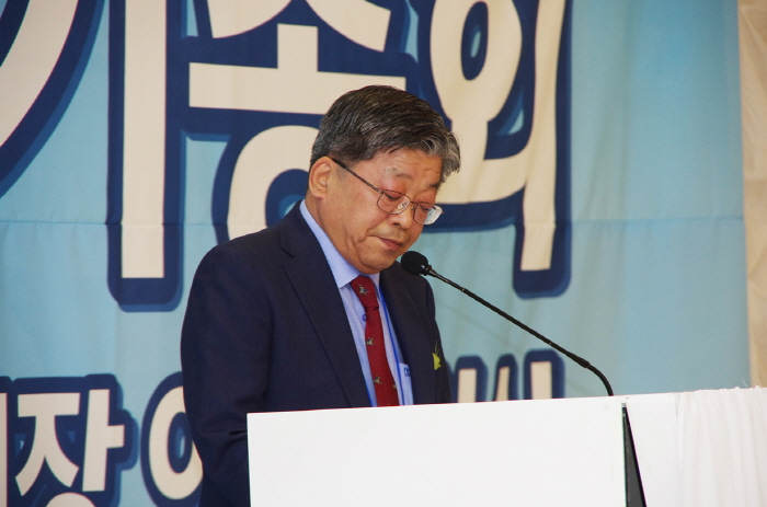 취임사 하시는 최창순(63회) 제11대 휘문교우회 신임회장님