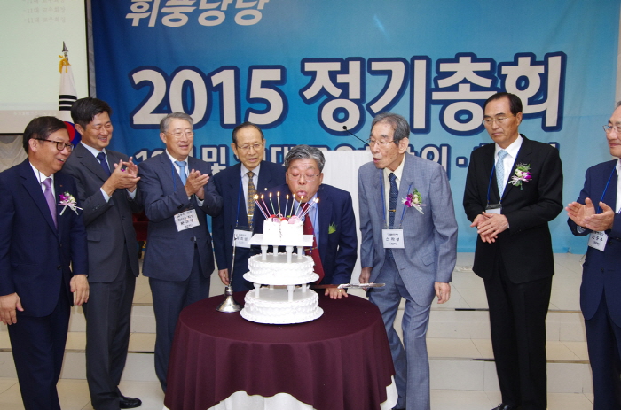 기념케잌 커팅이 끝나고... 신임 최창순 회장님과 신좌성 선배님께서 후~~!
