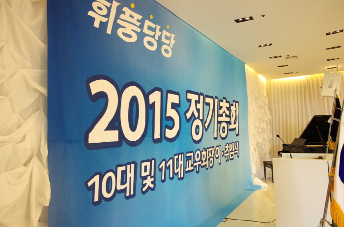 총회장 안에 걸린 플래카드...리더스 클럽 양재점(외교회관)