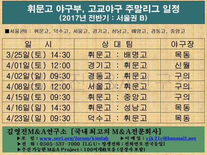 - [3288] 김영진 휘문고 야구부, 2017년 고교야구 주말리그 일정표(전반기) 2017-03-12