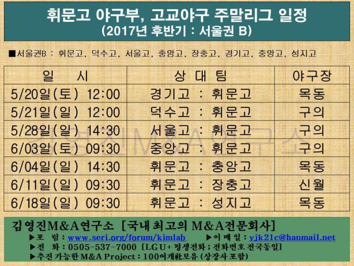 휘문고 야구부, 2017년 고교야구 주말리그 일정표(후반기)