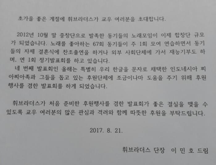- [3294] 관리자 휘문 제 67회, 휘브라더스 정기연주회 안내 2017-08-28