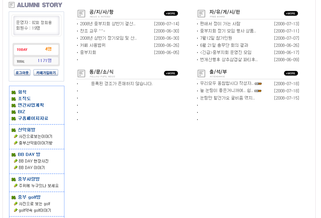 - 아래 그림은 경기 중부지회 커뮤니티 사이트 입니다.