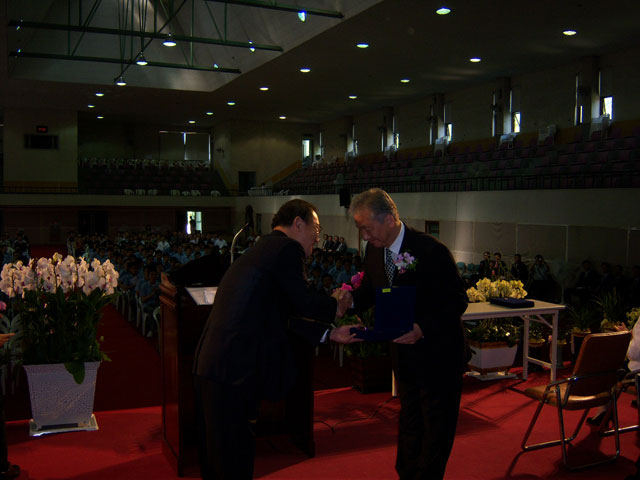 신흥우 교우회장은 김 선규 교장선생님께 송공패 전달과 송공사로 따뜻한 위로와 격려의