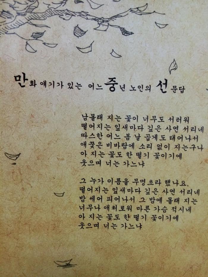 거창하게 표현하면 자서전이고 예의 없이 표현하면 신변잡기인데 "만화애기가 있는 중년 노인의 선문답"이라는 책명으로 향기나는 삶의 이야기를 세상에 내어 놓았읍니다.
