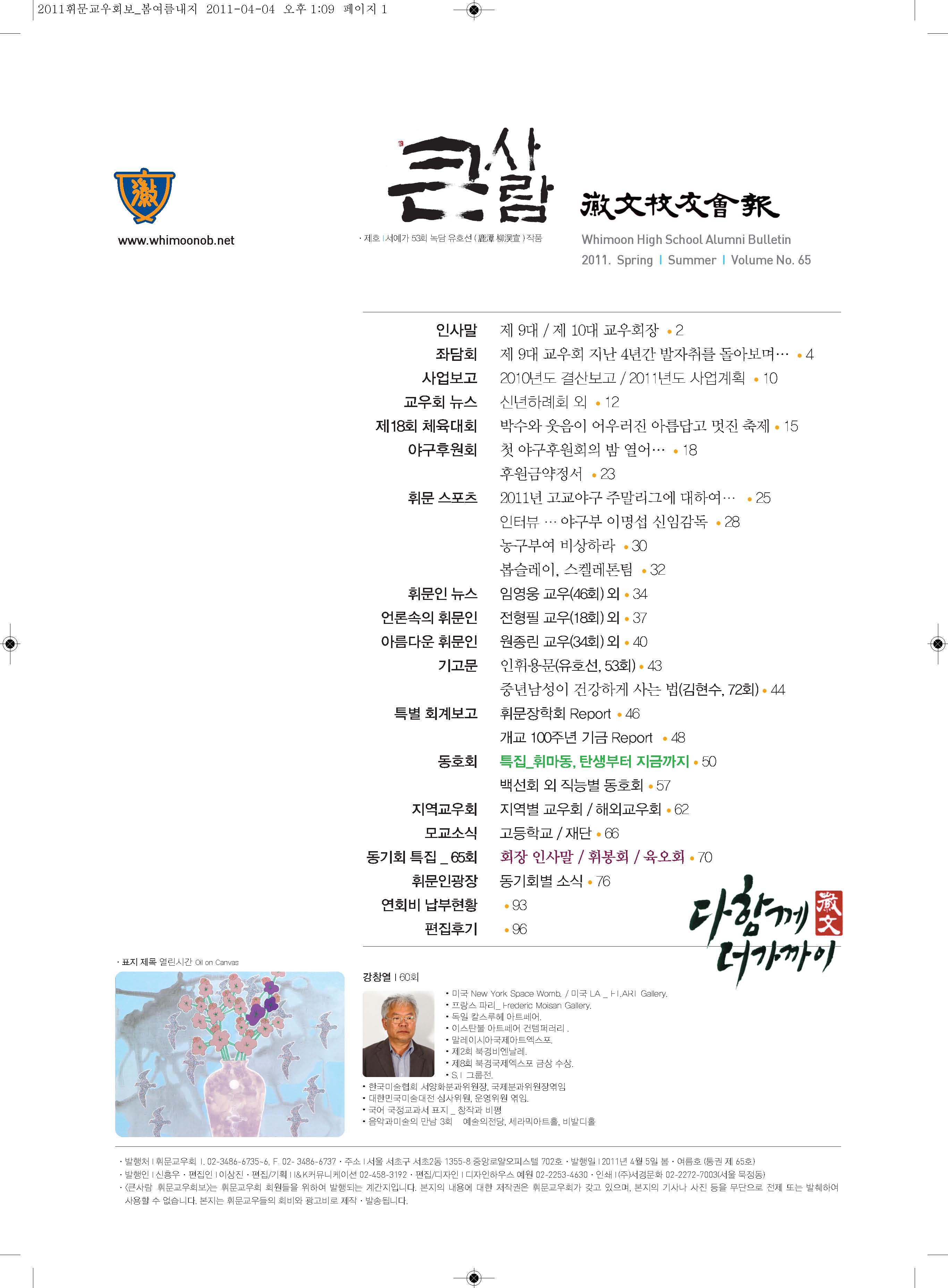 65호(2011.4월 봄,여름호) 휘문교우회보 표지 -